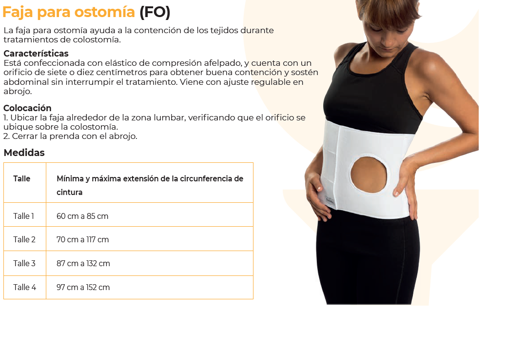 *Indicado para proveer compresión abdominal y apoyo a la colostomía.
