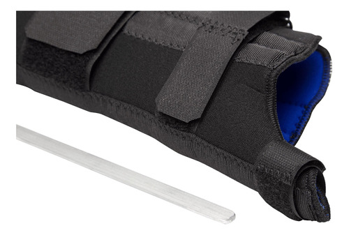 Abrir la prenda colocarla desde el pulgar hasta el antebrazo. Cerrar los lazos en abrojo. El cierre superior, ajústelo alrededor del dedo pulgar para inmovilizarlo.